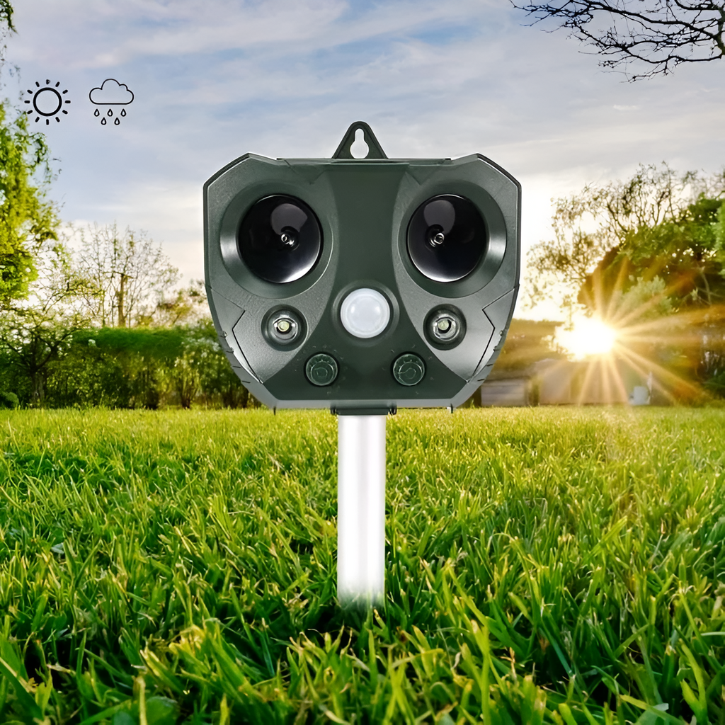 Denne enhed kører udelukkende på solenergi, så der er ikke behov for batterier eller ledninger. Den aktiveres automatisk med bevægelsesdetektion og inkluderer et lysblink for ekstra skadedyrsafskrækkelse. Vejrbestandig og nem at installere, det er en praktisk løsning til at beskytte udendørsområder på op til 110 m².