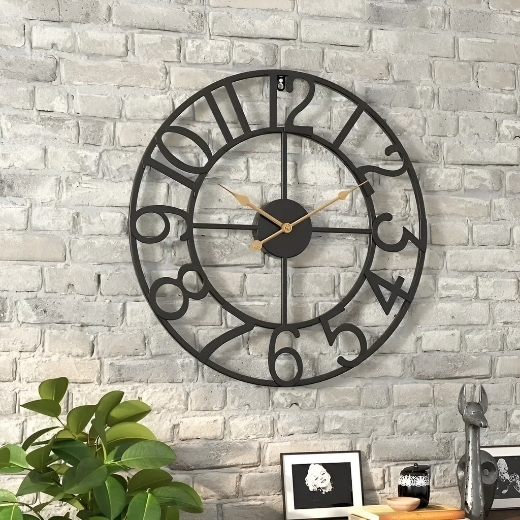 Dette ur er nemt at hænge op og passer perfekt ind i en række forskellige rum. Dets størrelse og design gør det både funktionelt og iøjnefaldende, ideelt til stuer, kontorer eller ethvert område, hvor du ønsker et stilfuldt, men praktisk ur.
