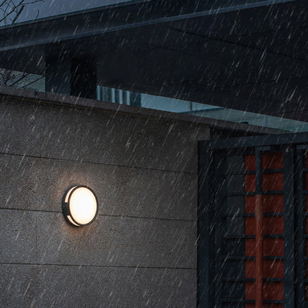 AeroLux – Moderne rund sort metal- og akryl udendørs væglampe