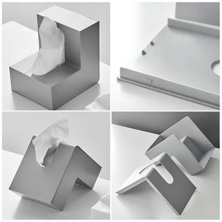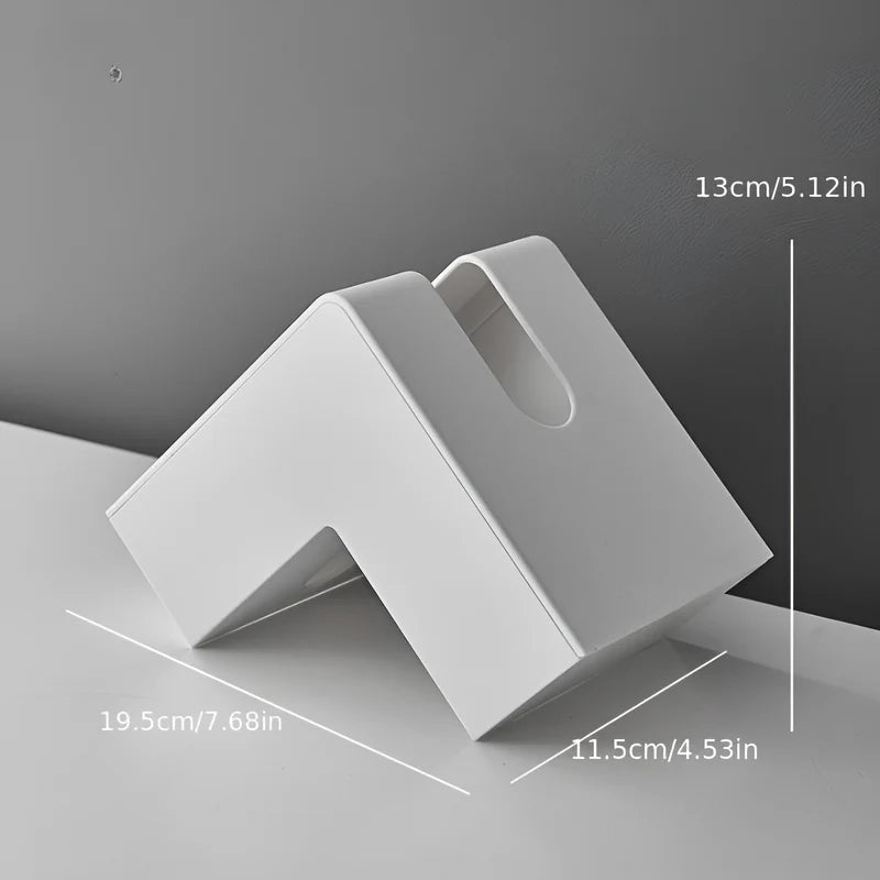 AngleEase er den perfekte løsning til at rydde op i dit rum. Dets slanke, L-formede design passer ubesværet ind i hjørner eller på skriveborde og giver et rodfrit og stilfuldt sted til dine lommetørklæder. Ikke flere akavede, pladsopslugende lommetørklædekasser!