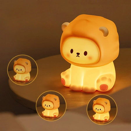 Den AnimalGlow dæmpbare natlampe for børn har et charmerende løvedesign, der tilbyder både sikkerhed og komfort. Dets bløde, blide lys hjælper med at sætte scenen for en beroligende sengetid. Perfekt til børneværelser, det skaber et fredeligt miljø, der hjælper de små med at falde i søvn med lethed.