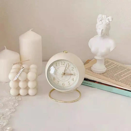 Tilføj et vintage touch til din indretning med dette elegant designede skrivebordsur med romertal. Dens runde ansigt, antik-inspirerede detaljer og tidløse æstetik bringer en raffineret charme til ethvert rum. Uanset om det placeres på et skrivebord, en hylde eller et bord, fungerer det både som et funktionelt ur og et slående dekorativt stykke. Forbedr øjeblikkeligt dit rum med en blanding af nostalgi og sofistikering.