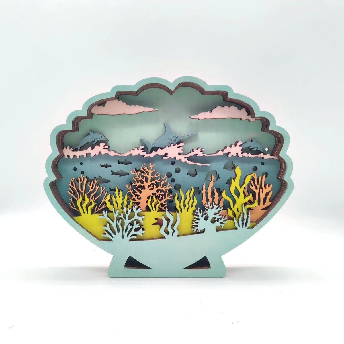 AquaCraft – Oplyst muslingeskal og fiskedekor med indviklet havinspireret design