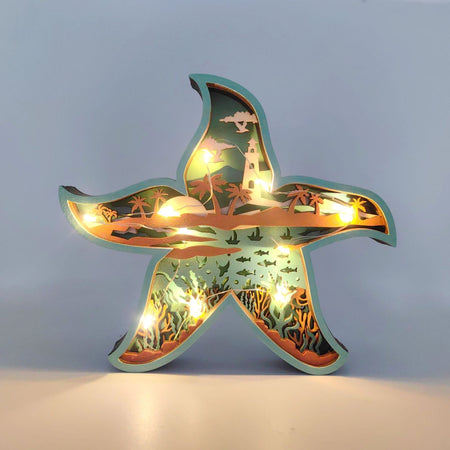 Disse dekorative lysdisplays har indviklede udskårne designs i form af en muslingeskal og en fisk, der fanger skønheden i undervandsscener. Den bløde belysning fremhæver livet i havet og koraldetaljer, hvilket skaber en fascinerende effekt. Deres kunstneriske og legende æstetik gør dem til en perfekt tilføjelse til ethvert rum, der bringer en følelse af hav-inspireret charme.
