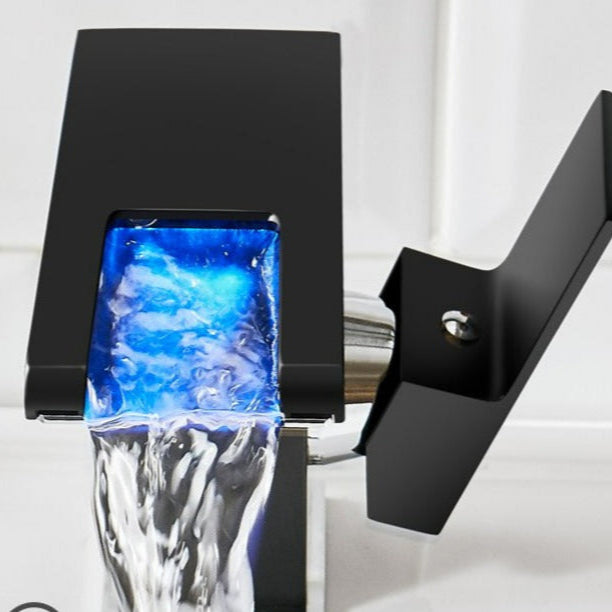 Forvandl dit badeværelse til et rum med moderne elegance med AquaFlow LED-armaturet, hvor design møder smart funktionalitet. Denne elegante lampe forvandler hverdagen til en oplevelse med indbyggede LED-lys, der skifter farve afhængigt af vandtemperaturen - hvilket forvandler rutinemæssig håndvask til en visuelt slående og intuitiv interaktion. Det er den perfekte blanding af praktisk anvendelighed, atmosfære og sikkerhed.