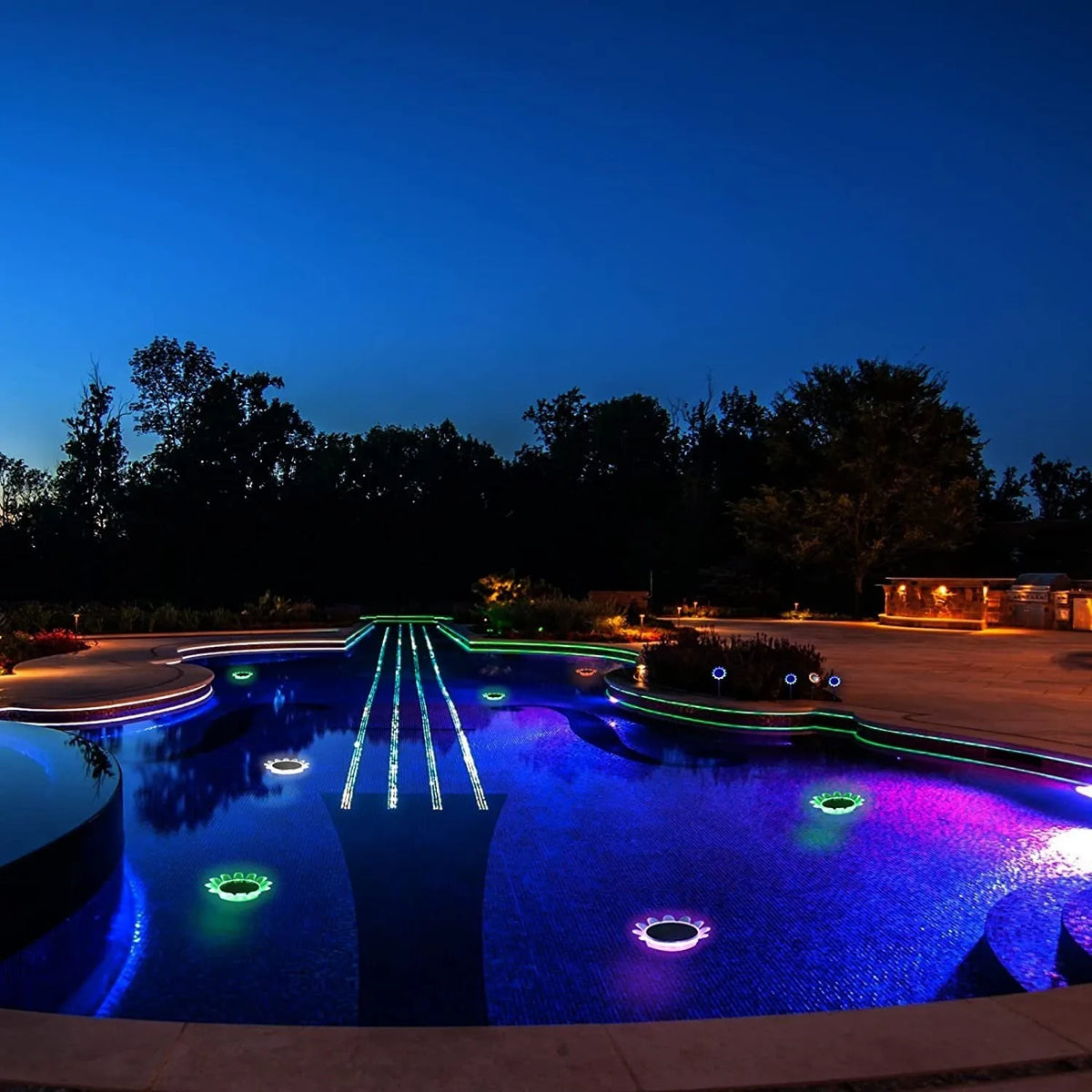 AquaGlow er designet til at være nem at bruge og alsidig, hvilket gør den perfekt til en række udendørs rum. Dens farveskiftende funktion skaber en dynamisk effekt, der tilføjer et smukt touch til vandelementer, havestier, terrasser og mere. Forbedre dine omgivelser med dette fængslende og energieffektive lys.