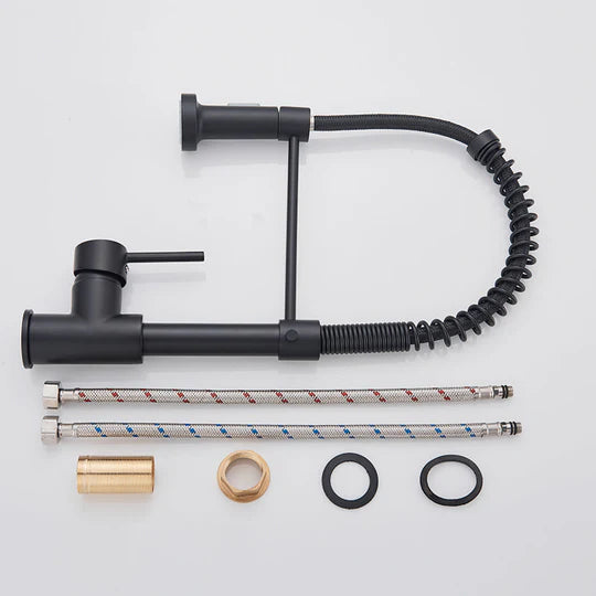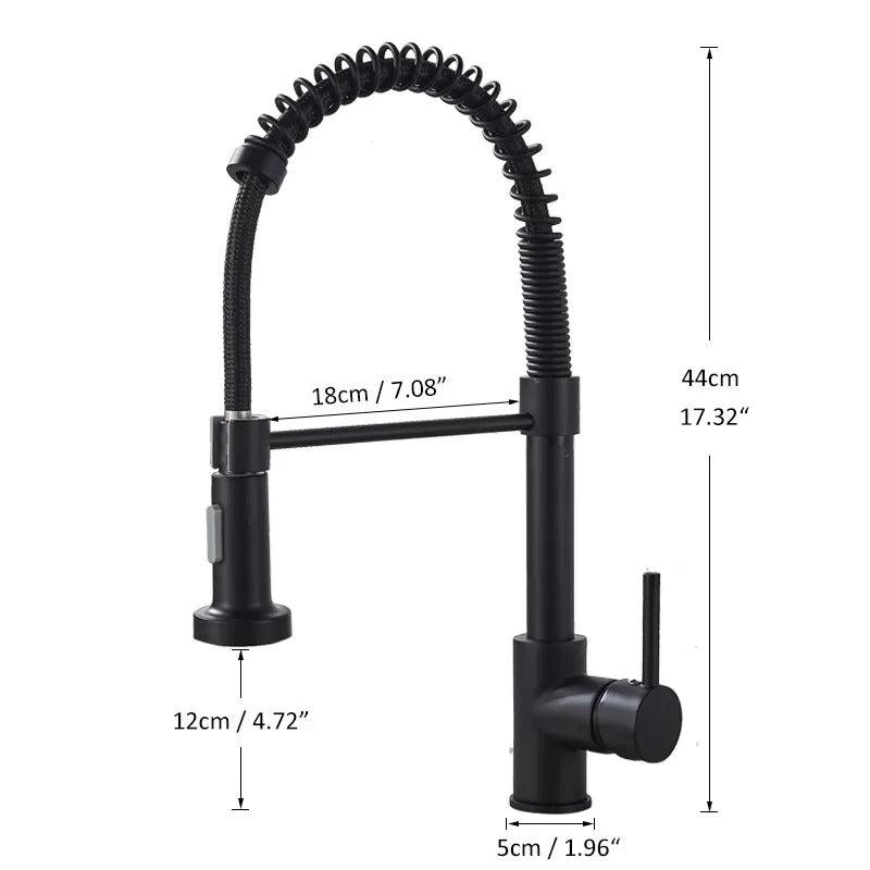 AquaSpin køkkenarmaturet bringer et strejf af elegance til dit køkken med sin trendy matsorte finish. Det slanke, moderne design løfter øjeblikkeligt ethvert køkkenområde og giver en luksuriøs, men funktionel opgradering. Med et 360-graders roterende hoved giver vandhanen fuld fleksibilitet, hvilket gør det nemt at rengøre tallerkener, fylde store gryder eller nå alle hjørner af vasken.