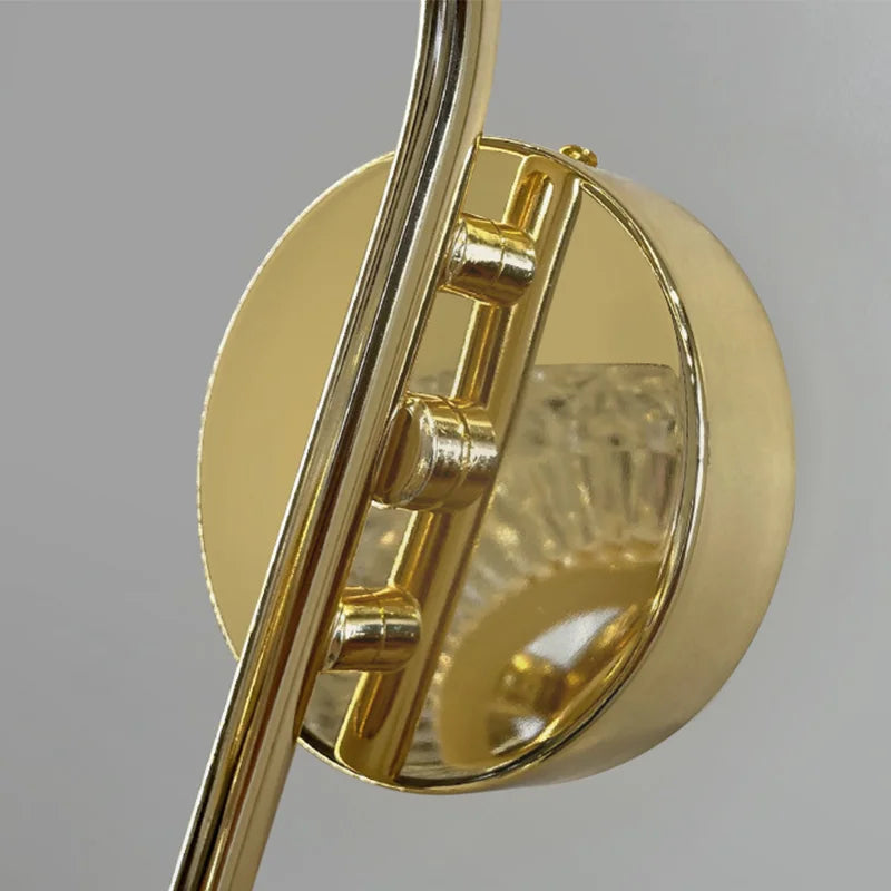 ArcGlow-væglampen bringer tidløs raffinement til dit rum med sin gyldne bue og funklende krystalaccenter. Den er designet til at skabe en eksklusiv og indbydende atmosfære og fungerer både som et statement og en funktionel lyskilde. ArcGlow forvandler almindelige vægge til smukke fokuspunkter.