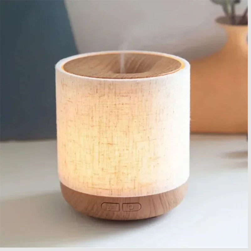 AromaGlow stof aroma diffuser kombinerer moderne design med beroligende funktionalitet. Med et stilfuldt stofudvendigt tilføjer denne diffuser elegance til ethvert rum, samtidig med at den tilbyder fordelene ved aromaterapi og luftfugtighed. Den indbyggede LED belysning skaber en beroligende atmosfære.