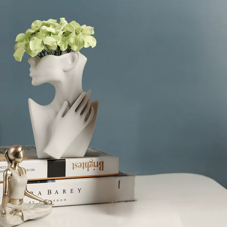 ArtFace bringer et strejf af moderne sofistikering til ethvert rum med sit unikke vasedesign med et stiliseret ansigtsmotiv. Denne kunstneriske vase fungerer ikke kun som en funktionel blomsterholder, men også som et fængslende indretningsstykke, der komplementerer en række forskellige indretningsstile. Uanset om den placeres i stuen, gangen eller på kontoret, tilføjer den en kreativ og stilfuld accent, der skaber et dristigt udtryk.
