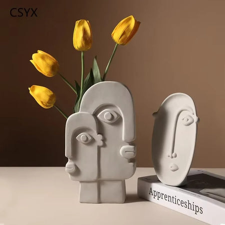 Artiface – Keramisk Skulpturvase med Abstrakt Ansigtsdesign