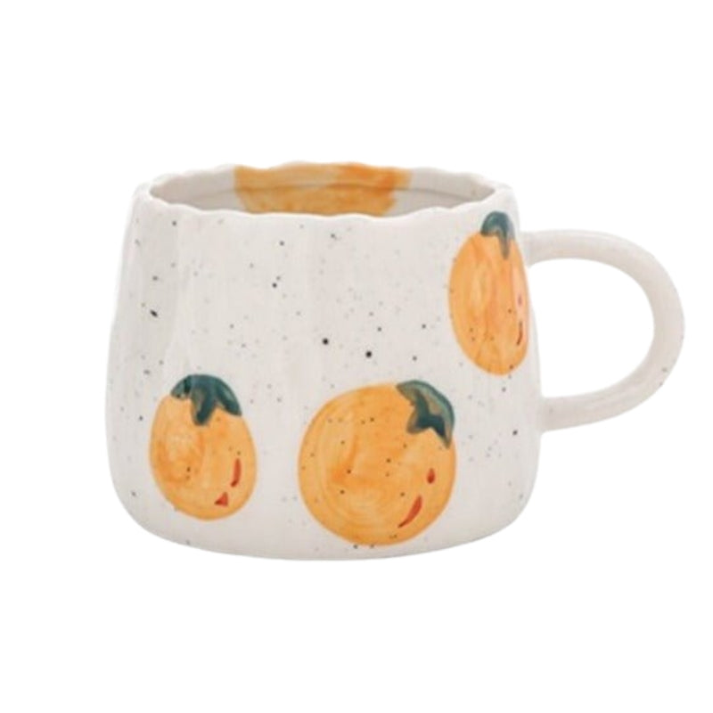 ArtSip – Keramisk Kaffekrus med Frugtillustration og Håndlavet Udtryk