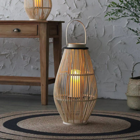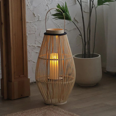 AuraCage dekorative lysestage har et lanterneformet bur med et håndtag, der er egnet til indendørs brug på borde, hylder eller i entréer. Det giver et afbalanceret dekorativt udseende og en stabil måde at vise stearinlys frem i hjemmet.