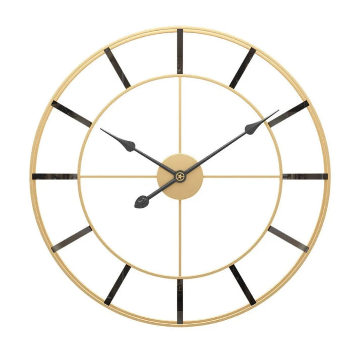 Forvandl ethvert opholdsområde med AuraClock, et moderne minimalistisk vægur, der ubesværet kombinerer stil og funktionalitet. Dette ur er lavet med præcision af førsteklasses materiale og har en elegant guldramme med slanke sorte accenter og visere. Dens runde design inkorporerer en minimalistisk talskive, der tilbyder en sømløs fusion af mode og praktisk. Den lydløse mekaniske mekanisme sikrer en støjfri oplevelse.