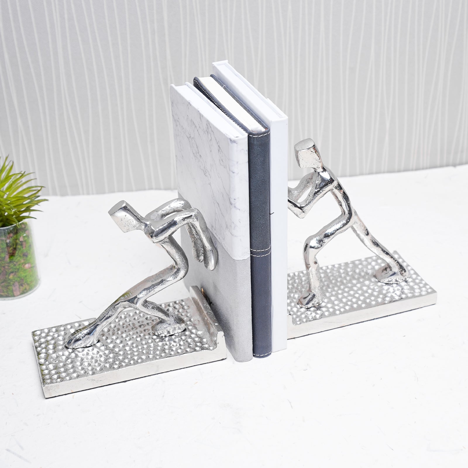 AuraHold bogstøtter forvandler almindelige hylder til et galleri med moderne kunst. Med menneskeformede skulpturer, der er frosset fast i en kraftfuld positur, bringer de både funktion og kunstnerisk flair til dit rum. Disse bogstøtter holder din samling solidt, samtidig med at de tilføjer et unikt dekorativt touch, der sætter gang i samtaler.
