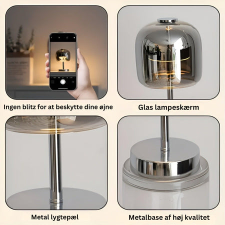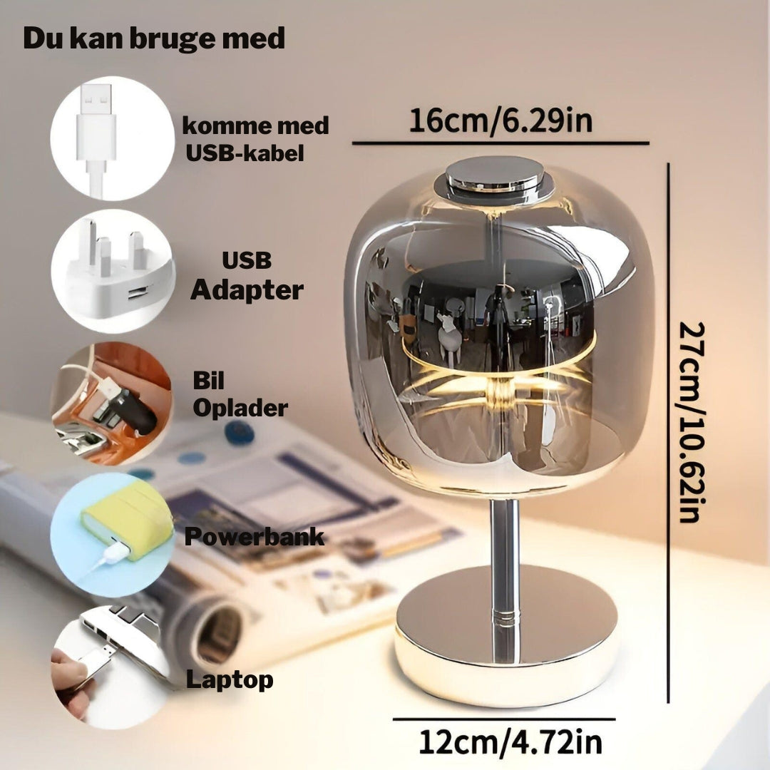 AuraLight - Elegant Bærbar Bordlampe i Glas Med Justerbar Blød Belysning