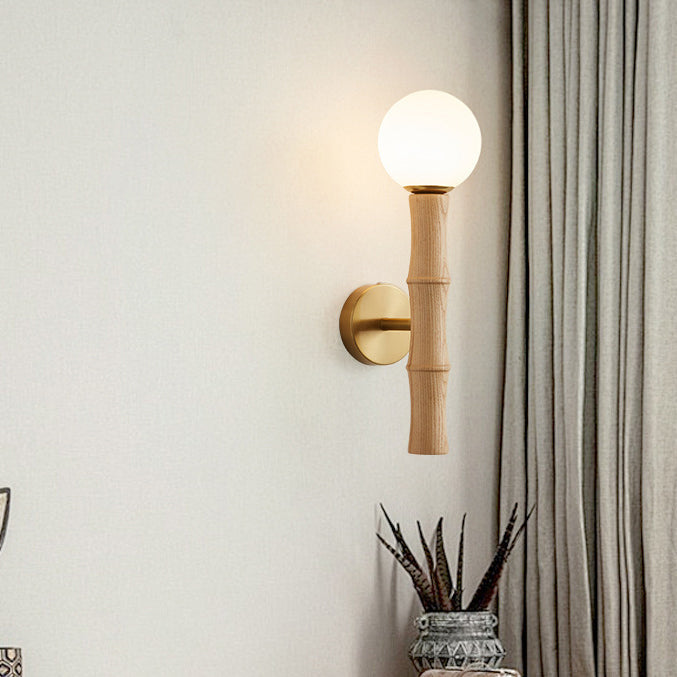 BambooRay – Retro Væglampe i Massivt Træ med Bambusinspireret Cylinderform