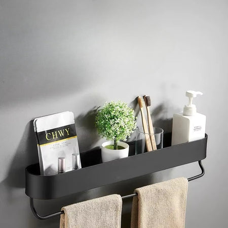BathSpace – Elegant badeværelseshylde med håndklædeholder til kompakt og stilfuld opbevaring