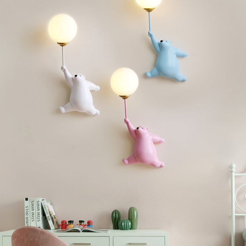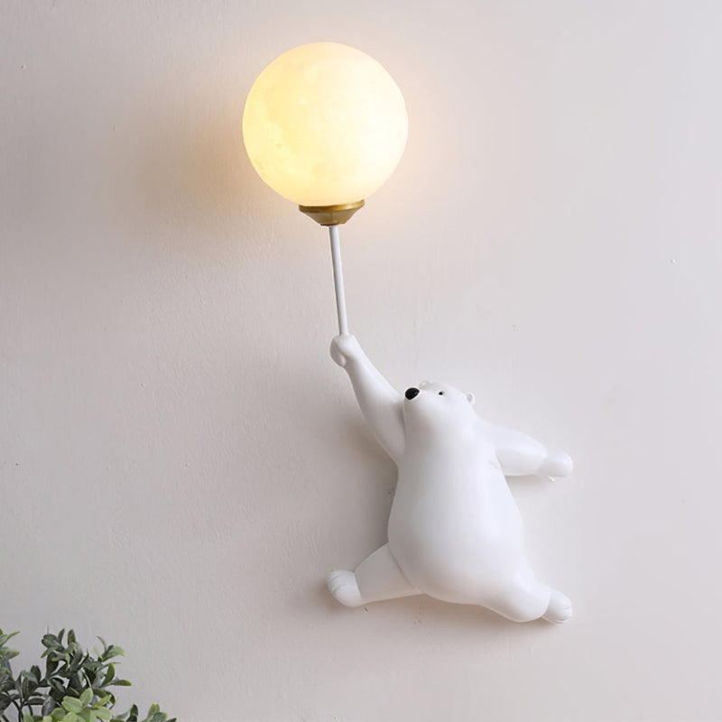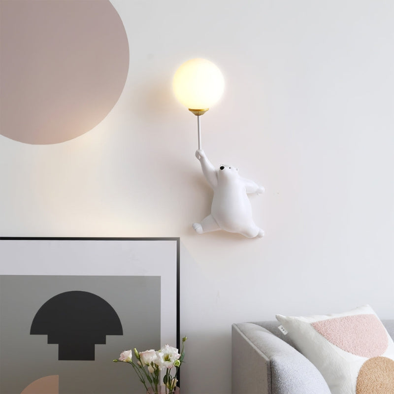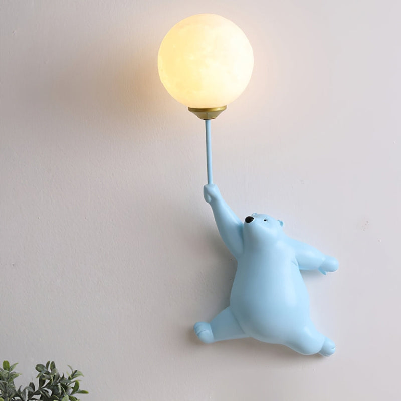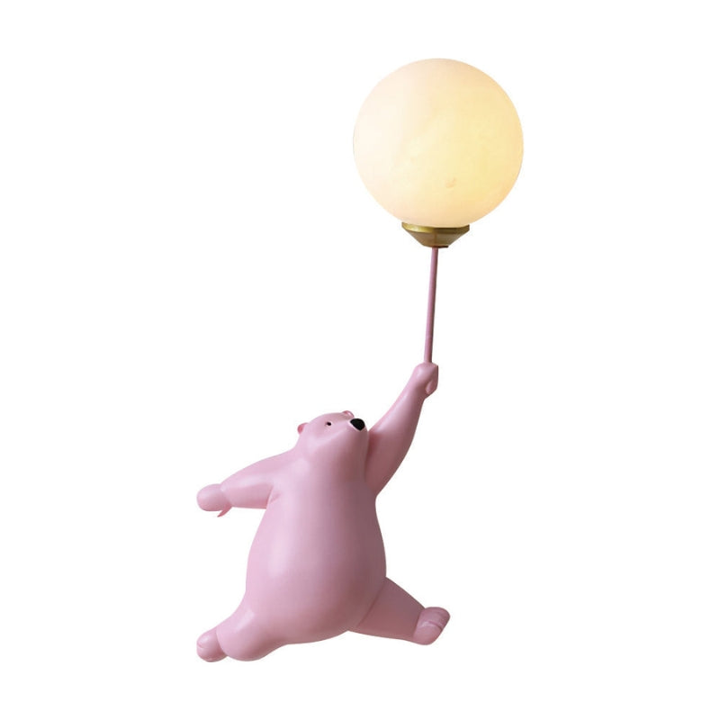 BearGlow-væglampen har en bjørn på en klynge balloner og passer godt til soveværelser, legerum, kontorer eller stuer. Fremstillet i resin, er den både robust og praktisk. Kompatibel med LED- eller Edison-pærer, giver den funktionel belysning til indendørs rum.