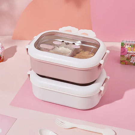 BentoBuddy – Cute Face Madpakke med sjovt låg og madrum