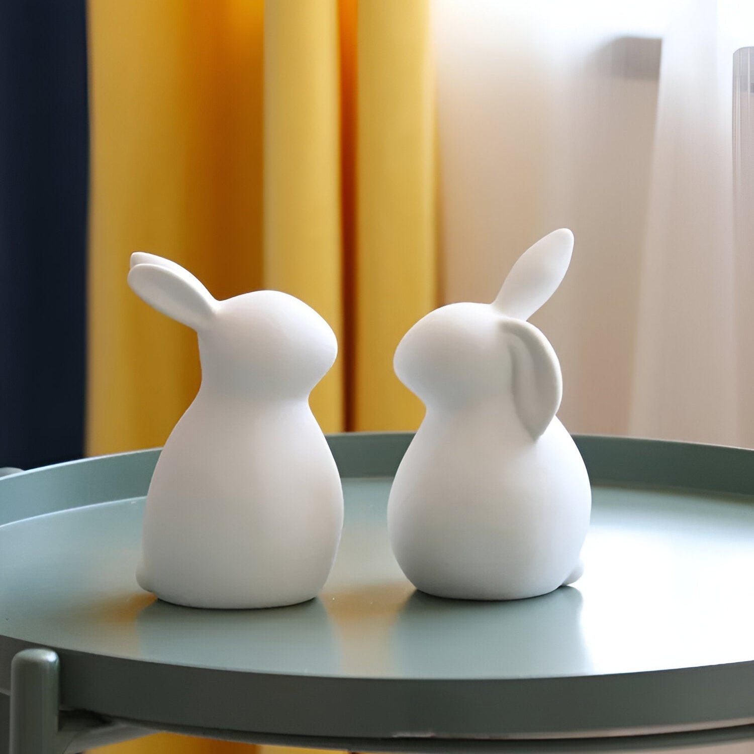 BlissBloom - Charmerende hvide kaninfigurer til elegant påskedekoration