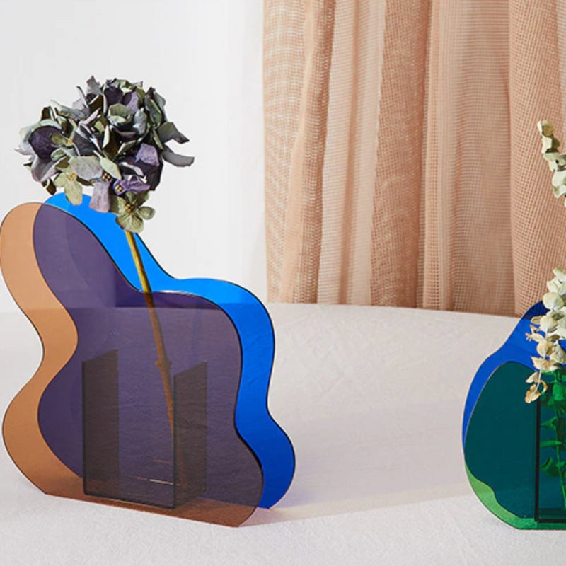BloomAura blomster vase har et kreativt og dekorativt design, egnet til at forbedre ethvert indendørs rum. Velegnet til at vise friske eller kunstige blomster til boligdekoration. Dens design er egnet til placering på borde, hylder eller køkkenborde osv.