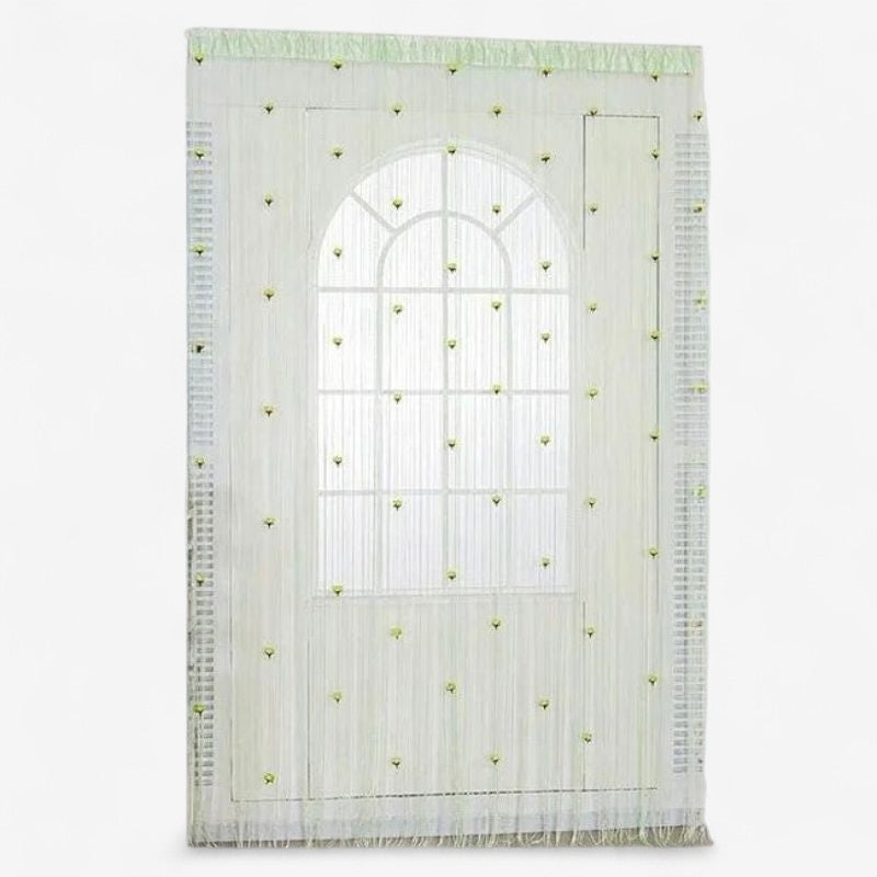 Tilføj et charmerende præg til dit hjem med dette dørgardin med blomsteraccenter. Designet med et trådophængningsmønster forbedrer det din indretning, samtidig med at det tilbyder let privatliv, ideelt til døråbninger, vinduer eller kreative rumdelere.