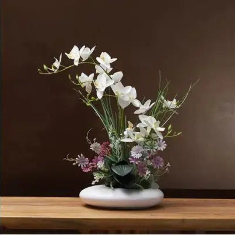 BloomNest – Elegant vase med naturtro orkideopsætning til moderne indretning