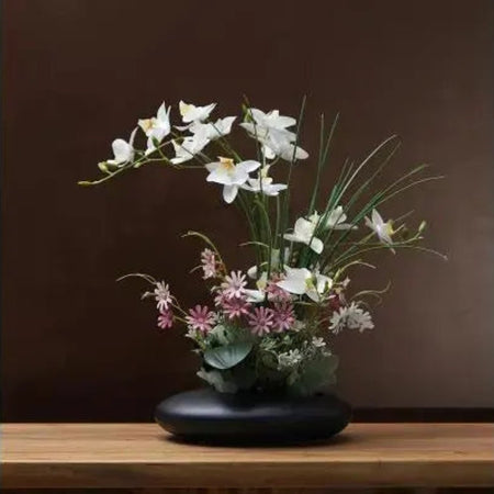 Designet til at passe ubesværet ind i enhver indretningsstil, bringer denne vase blød elegance til dine omgivelser. Uanset om den placeres i stuen, gangen eller receptionen, tiltrækker den opmærksomhed uden at overvælde rummet. Orkidéerne forbliver livlige og iøjnefaldende dag efter dag. Det er et tidløst indretningsvalg for dem, der elsker enkelhed og stil.
