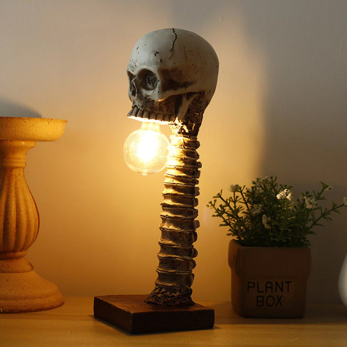 BoneChill - Horror Skull Lampe Med Glødende Ojne og Rygsøjle Design