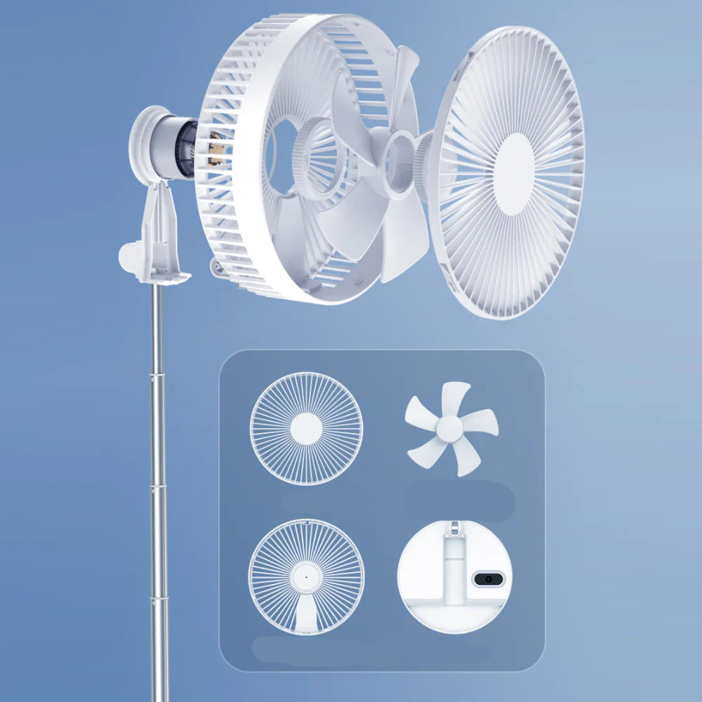 BreezeFlows minimalistiske og slanke design suppleres af det effektive spiralbladsmønster, der maksimerer luftstrømmen. Ventilatorens runde hoved sikrer, at luftcirkulationen er jævn og effektiv, så du holdes afkølet uden at blive distraheret. Uanset om den placeres på dit skrivebord eller natbord, passer den godt ind i forskellige indretningsstile og tilbyder både funktionalitet og stil.