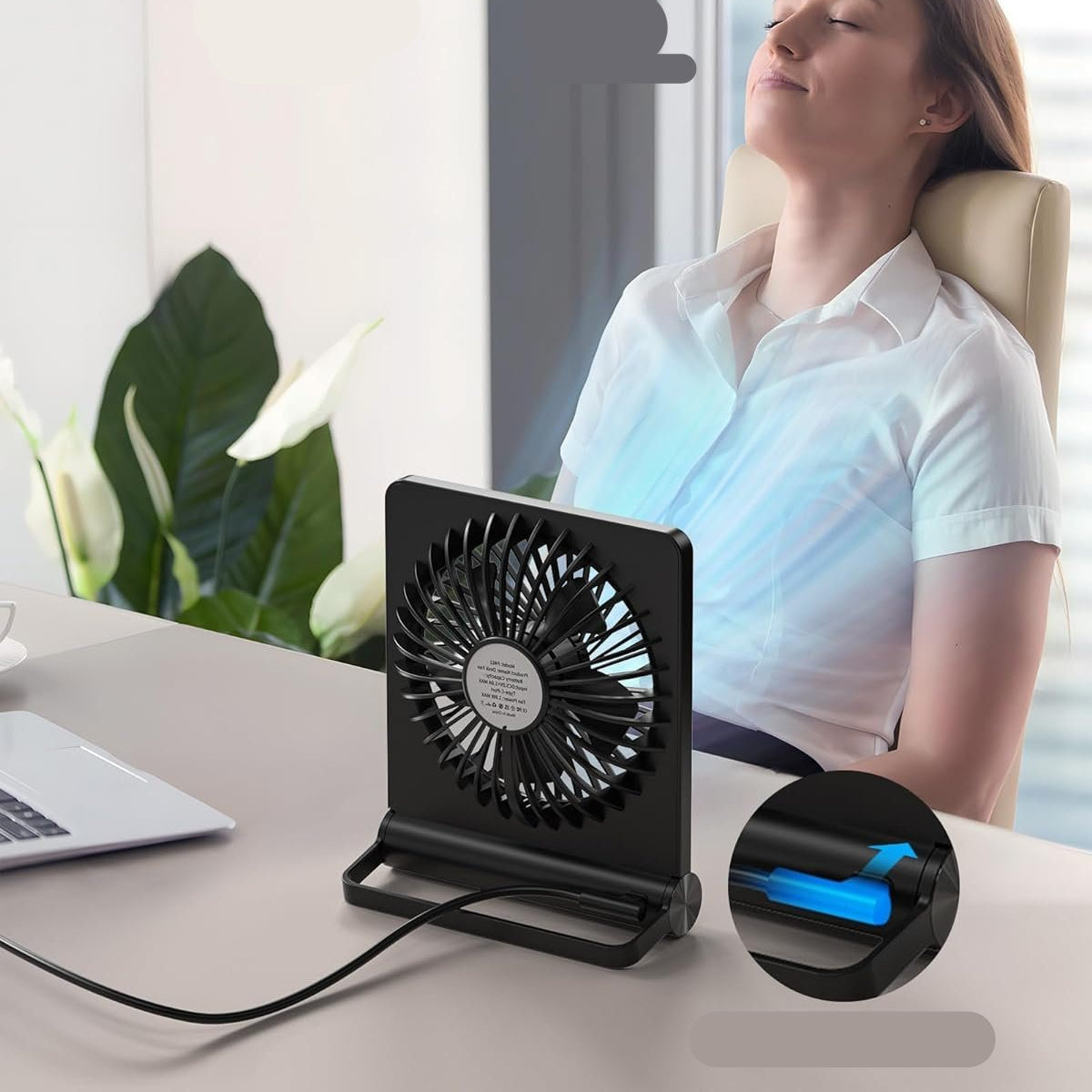 BreezeFlow - Ultra-støjsvag bordventilator med stærk luftstrøm og lækkert design
