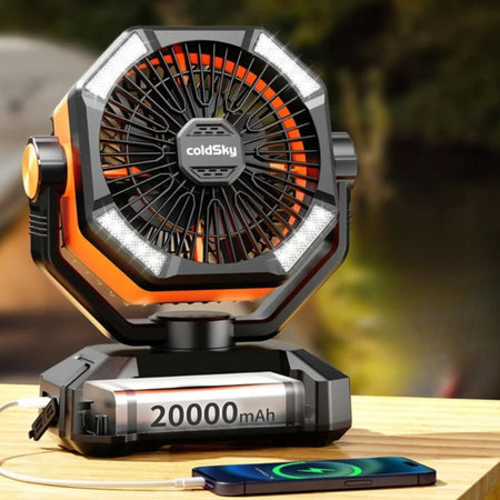 BreezeMaster udendørs ventilator er din perfekte ledsager til udendørs eventyr. Den er designet til at give exceptionel luftstrøm og har et dobbeltmotorsystem med 8 justerbare hastigheder, så du kan skabe den ideelle brise til camping, grill eller enhver udendørs aktivitet. Denne blæser sikrer, at uanset varmen, vil du forblive komfortabel og frisk.