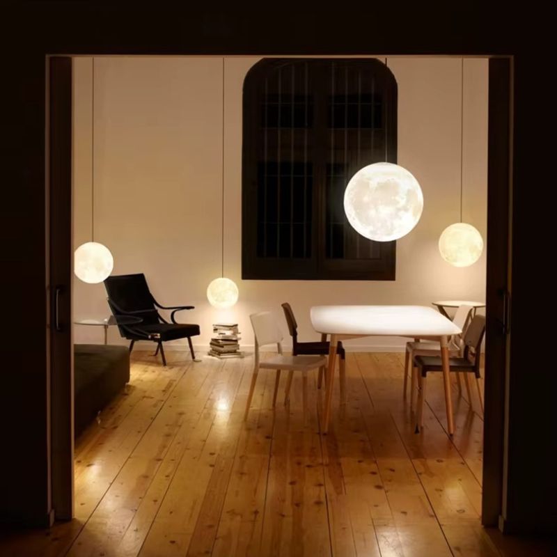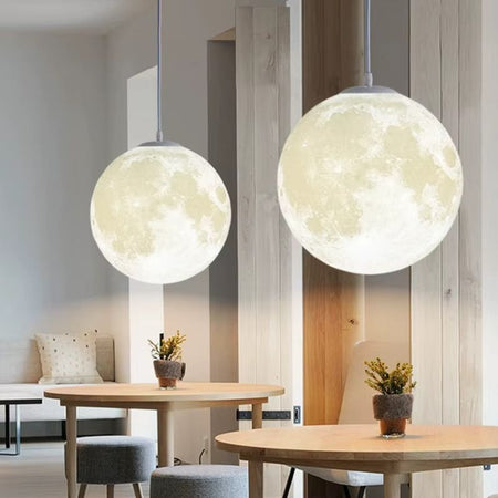 Den BrightMoon LED pendellampe har et måneformet design til indendørs brug. Den kan installeres i stuer, soveværelser eller kontorer.