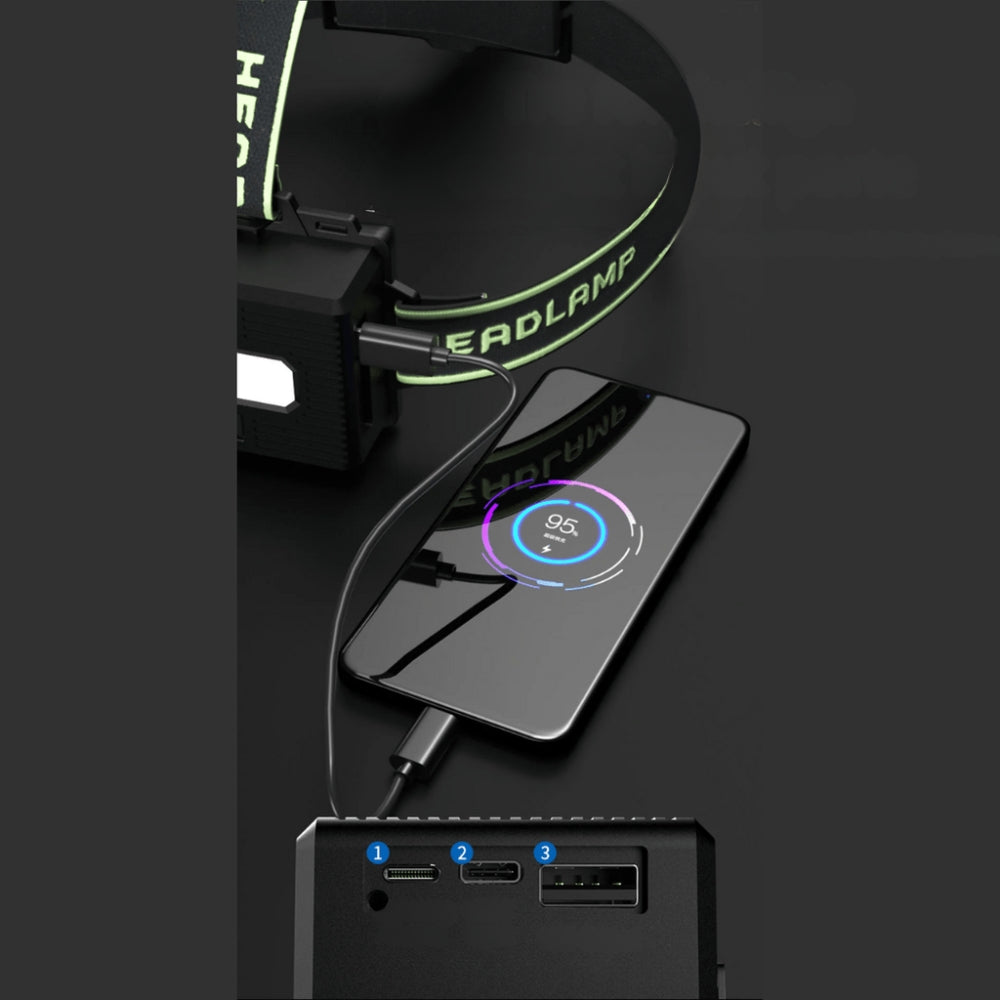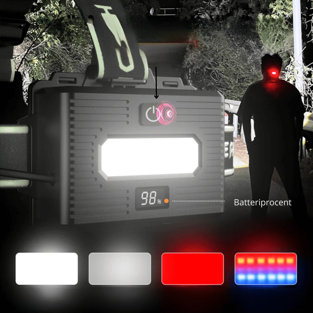 BrightTrail er din pålidelige pandelampe til nattearbejde, udendørs eventyr eller nødsituationer. Med en ultrastærk lysstyrke på 10.000 lumen og en rækkevidde på op til 300 meter, oplyser den nemt dine omgivelser. Uanset om du vandrer, jager eller reparerer noget i mørket, giver denne pandelampe dig sikker og pålidelig synlighed.