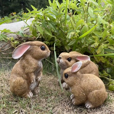 BurrowCharm – 3 delt sæt af harer i harpiks til have- eller terrasseudsmykning