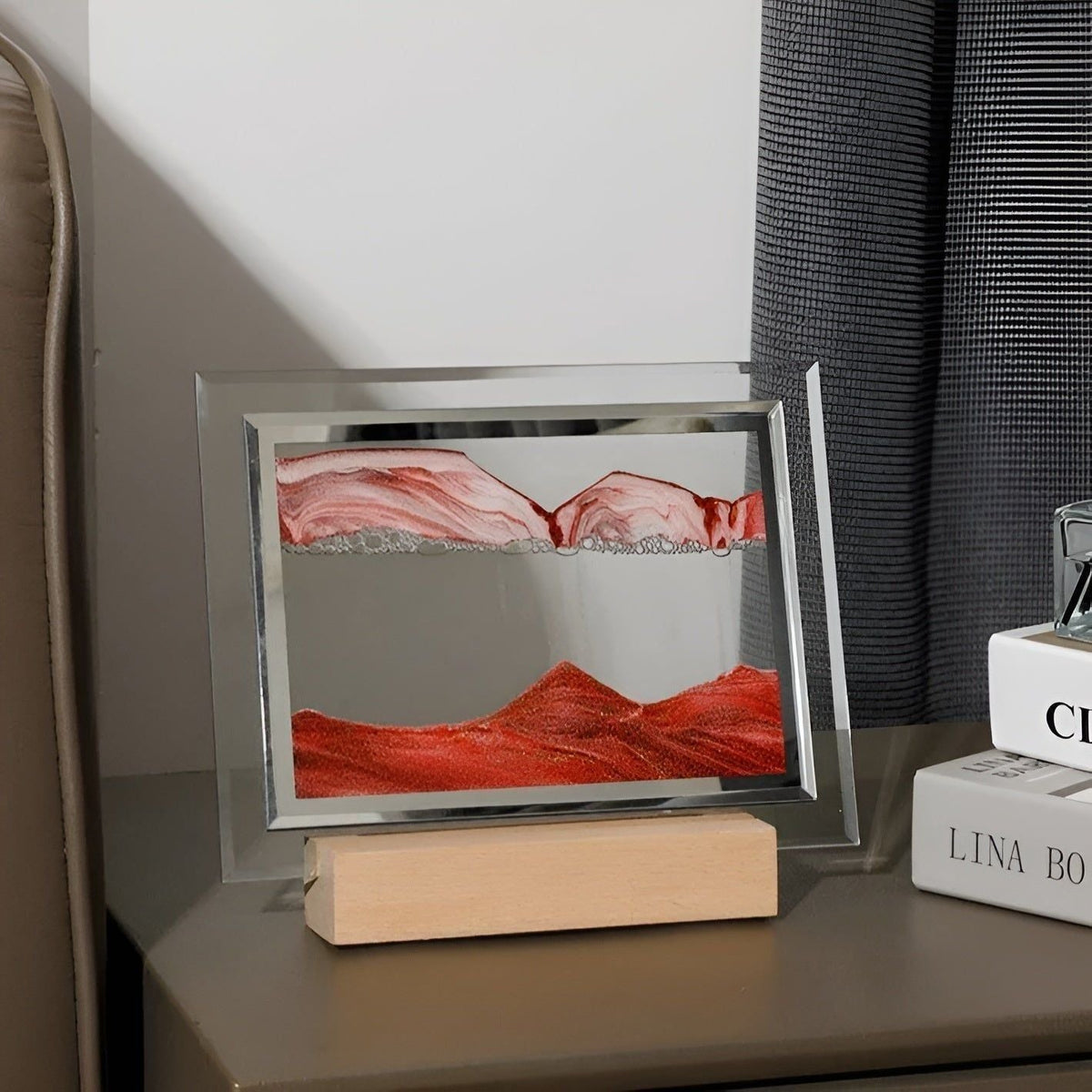 CalmiWave-lyset kombinerer flydende sandkunst med blød LED-belysning for at skabe en beroligende og kunstnerisk atmosfære. Når sandet langsomt skifter til nye mønstre, bringer det bevægelse og skønhed til ethvert rum. Denne fængslende udstilling gør den ideel til soveværelser, stuer eller arbejdsområder. Det er både et unikt dekorationsstykke og en beroligende tilstedeværelse til afslapning.