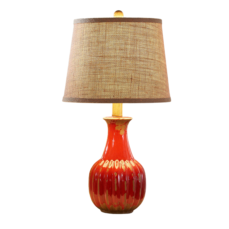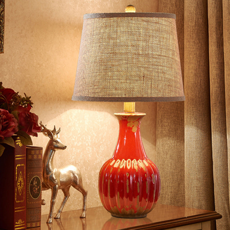 Cylindrisk keramikflaske bordlampe med stofskærm til soveværelser