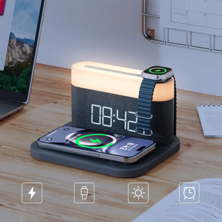ChargeAura - 15W trådløs oplader med integreret natlys og alarmfunktion