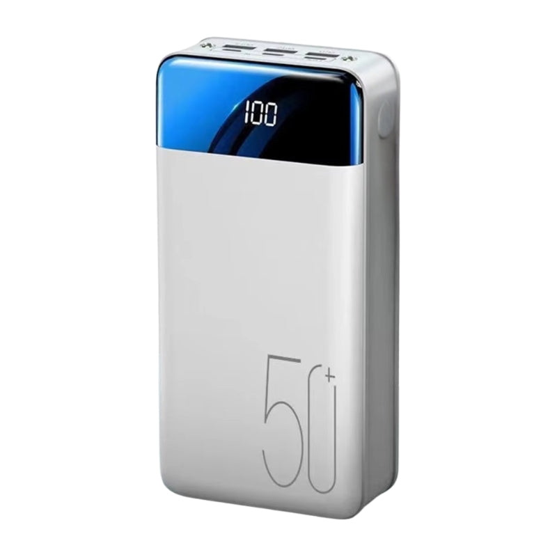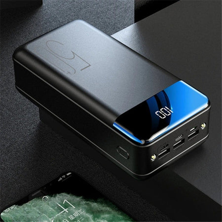 ChargeMax tilbyder en højkapacitets 50000 mAh power bank med tre input- og tre output-porte, der giver fleksible opladningsmuligheder for flere enheder. Dens kompakte design sikrer bærbarhed, hvilket gør den ideel til rejser eller daglig brug for at holde dine enheder opladede.