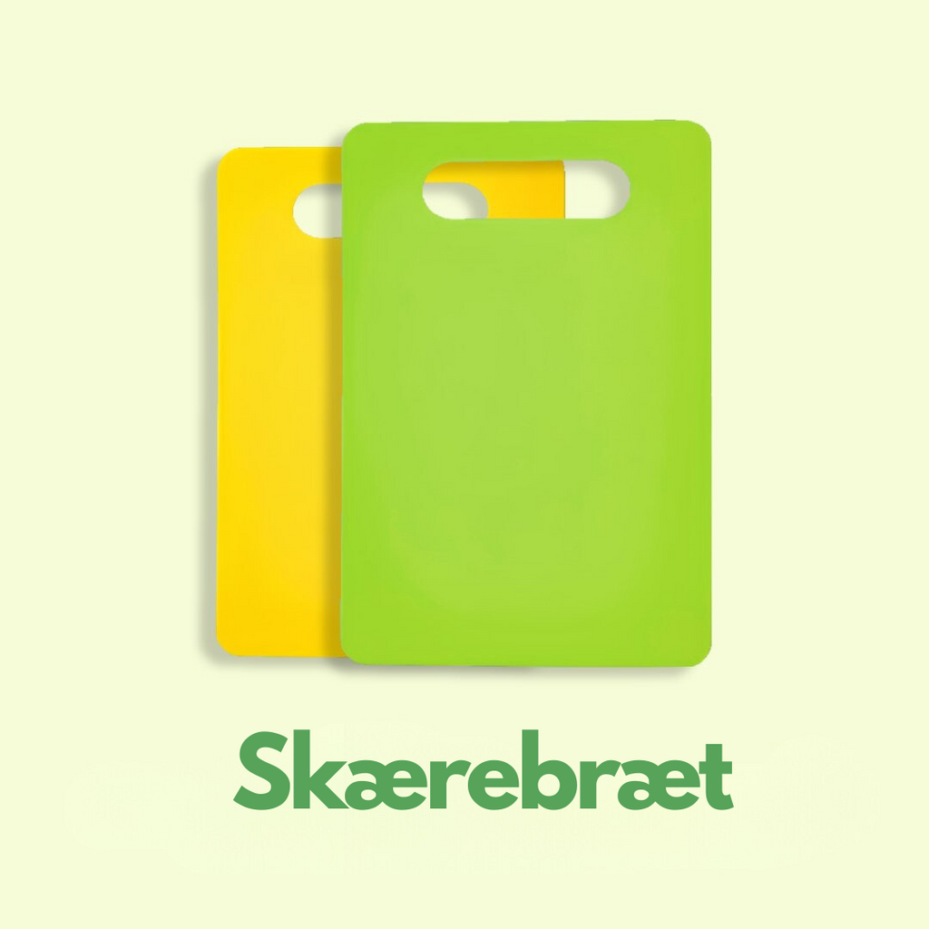 - Skærebrætter med skridsikre egenskaber for sikkerhedens skyld.