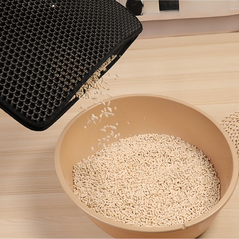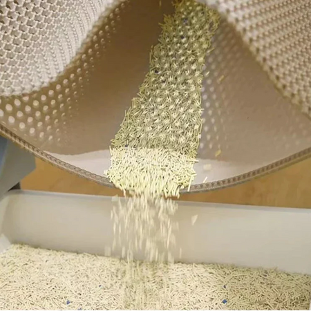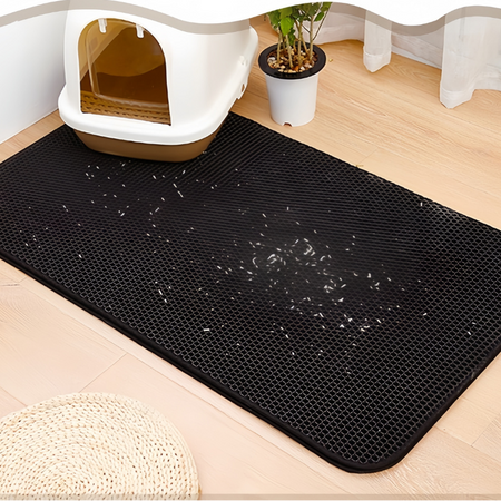 CleanGuard er en smart måde at beskytte dit gulv mod kattegrus. Med sit dobbeltlagsdesign fanger måtten effektivt grus, der falder af din kats poter, og forhindrer, at det spredes rundt i hjemmet. Den innovative konstruktion sikrer, at gruset bliver på måtten, hvilket gør rengøringen nemmere og holder dit hjem pænt og ryddeligt. Sig farvel til spredt grus og goddag til et renere miljø.