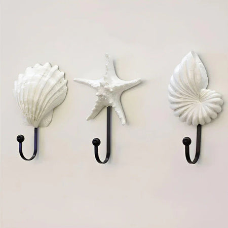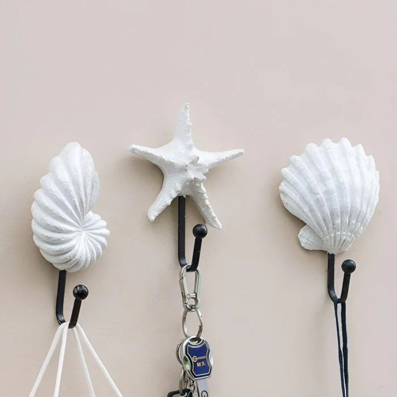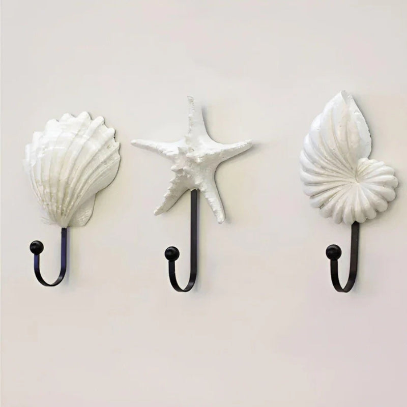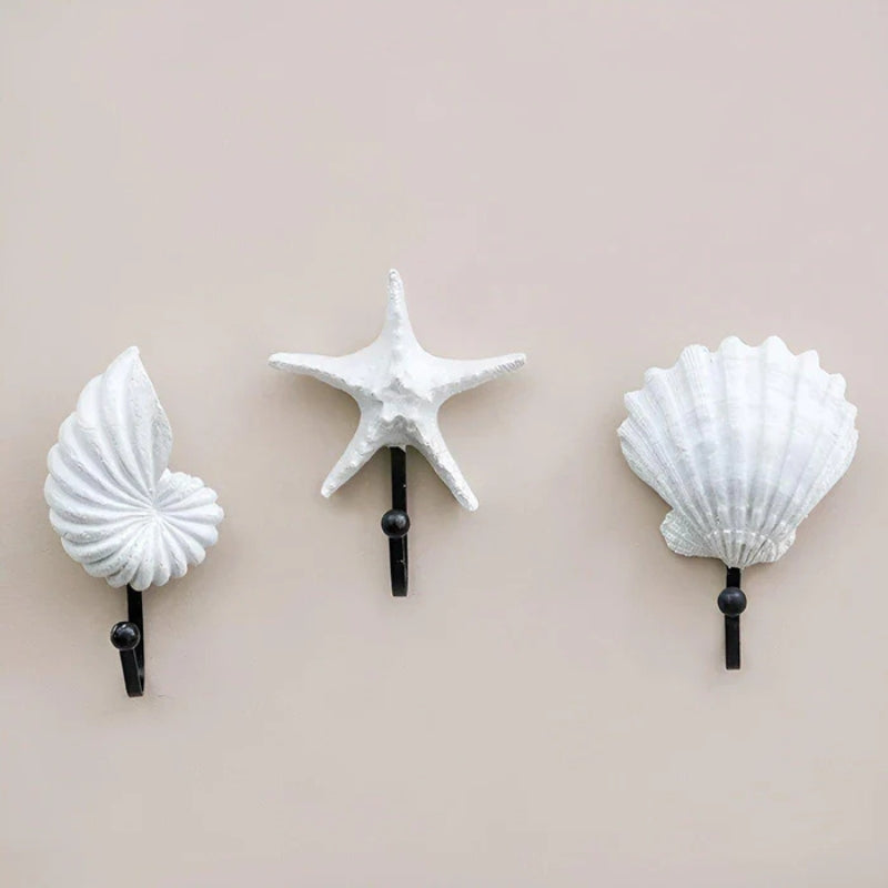 CoastalShell – 3-Pak Vægkroge i Harpiks med Nautisk Design