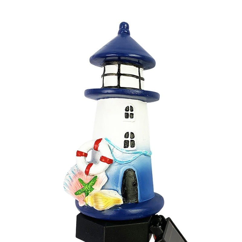 LED-udendørslampe formet som et fyrtårn med klassisk blå og hvidt design og konisk tag. Udstyret med livbøje- og skaldyrsdetaljer. Giver varm LED-belysning til haver, terrasser eller stier. Fremstillet af vejrbestandige materialer og inkluderer en nem jordmonteringspind.