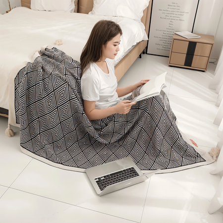 ComfyNest-tæppet har et fedt geometrisk mønster, der tilføjer et strejf af moderne elegance til ethvert rum. Uanset om det er draperet over sofaen eller brugt på sengen, forbedrer det dit rum med både stil og varme. Dens moderne design gør den til et perfekt match til forskellige boligindretninger.