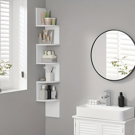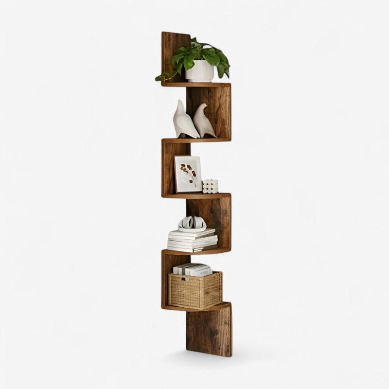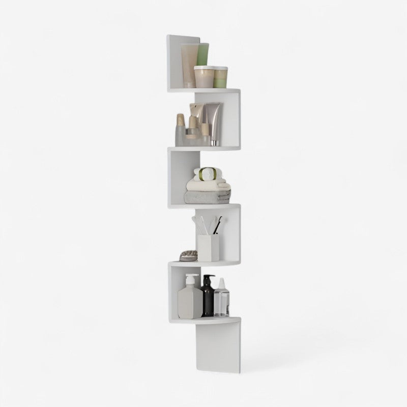 CornerShelf har flere niveauer designet til hjørneområder. Den kan bruges til at organisere eller fremvise dekorationer, bøger eller små planter. Hylderne kan monteres i stuer, soveværelser eller kontorer for at tilbyde opbevaring i hjørneområder.