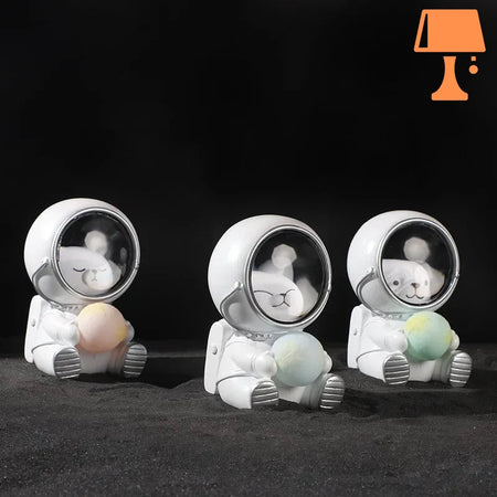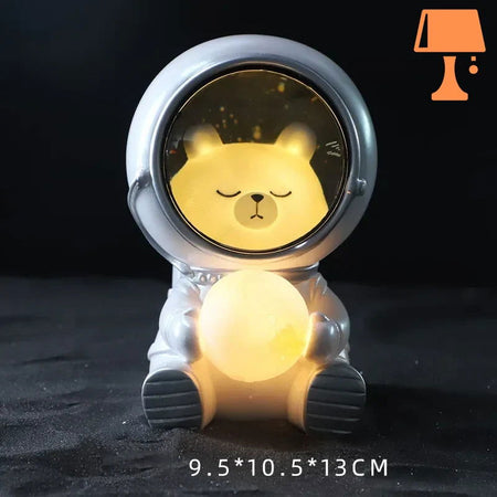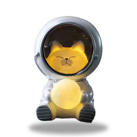 CosmicPaw sengelampen har en dejlig kat klædt ud som en astronaut, komplet med spidse ører og et smilende ansigt synligt gennem en gennemsigtig rumhjelm. Den futuristiske sølvfarvede astronautdragt tilføjer dens charme, mens katten holder en lille lysende kugle, der spreder et blødt, varmt lys. Dette fængslende design tjener ikke kun som en lyskilde, men sætter også gang i fantasien, hvilket gør sengetid til en sjov og eventyrlig oplevelse for børn.