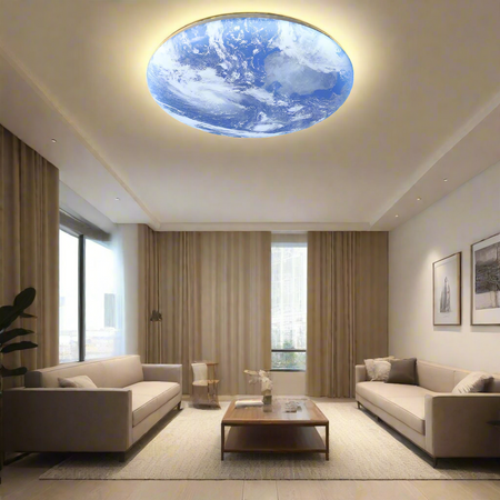 CosmoBeam Jord udskriv loftslampen tilføjer et unikt og futuristisk præg til dit rum og skaber en fordybende og fængslende atmosfære. Den er designet til at forbedre ethvert rum og giver en enestående lysoplevelse, der transporterer dig til en anden verden. Ideel til soveværelser, stuer og gange, det er den perfekte måde at løfte dit hjems æstetik.