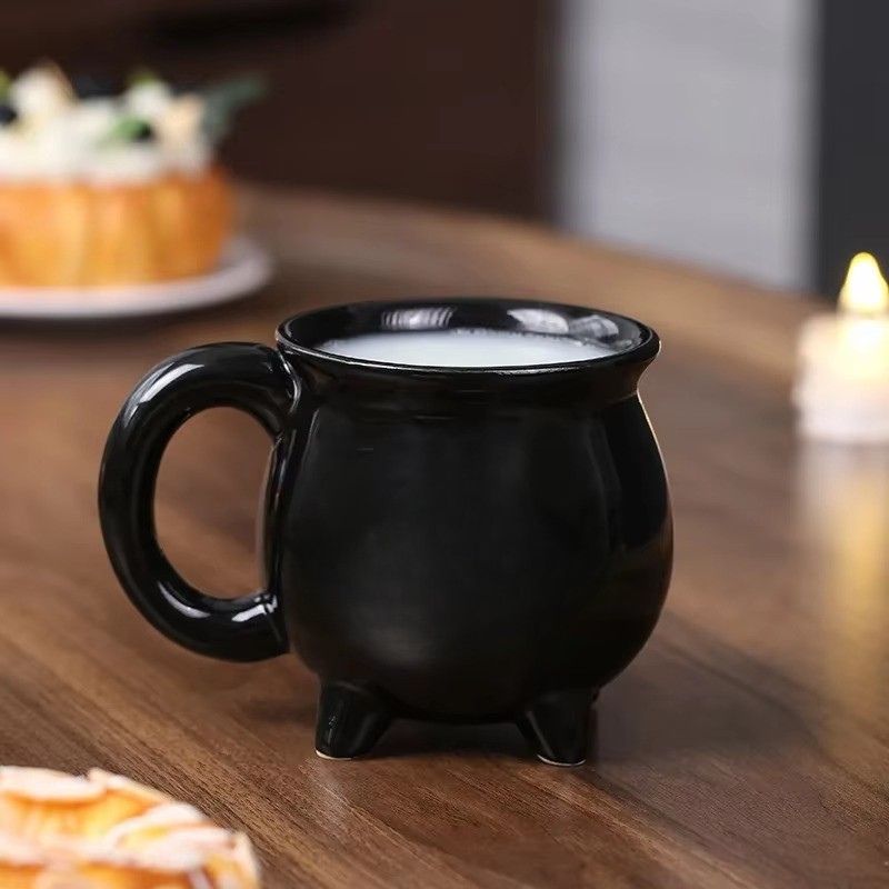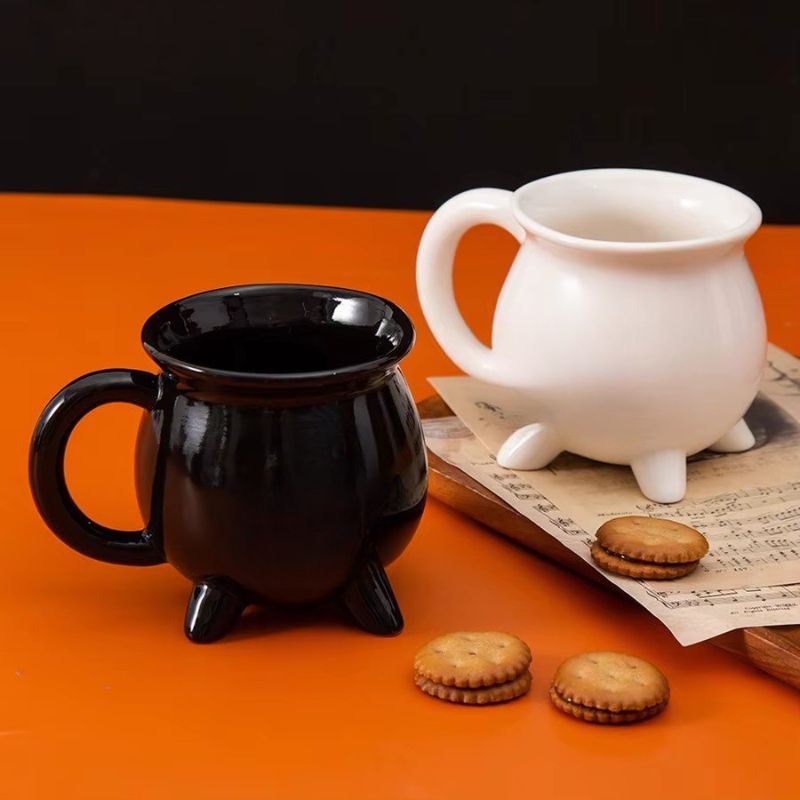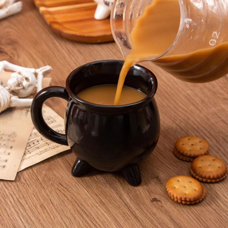 Dette kaffekrus har et hank og en bund. Det har en kompakt og struktureret form. Det kan placeres på borde, diske eller hylder.