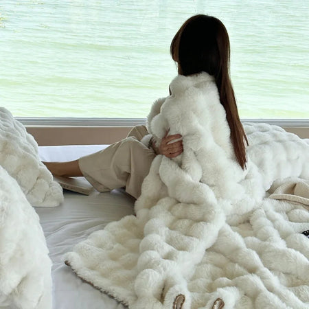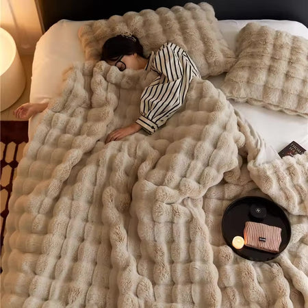 Dette hyggelige tæppe er designet til at give varme og komfort, så ethvert rum føles mere indbydende. Dets teksturerede design forbedrer det overordnede udseende, perfekt til at drapere over senge eller sofaer. Uanset om du læser, ser tv eller bare slapper af, tilbyder dette tæppe den perfekte blanding af stil og hygge.